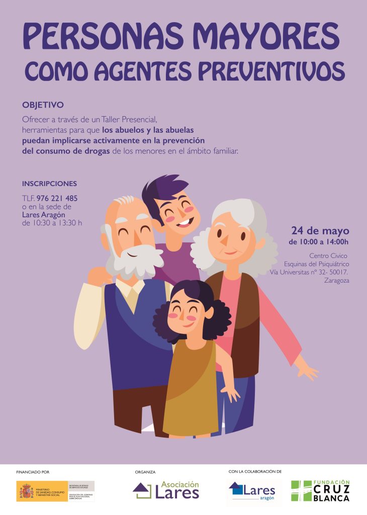 Fundación Cruz Blanca y Lares Aragón colaboran con una actividad organizada por la Asociación Lares. Se organiza un un taller dirigido a abuelos/as cuidadores para dotarles de herramientas para que puedan implicarse en actividades de prevención de consumo de drogas de los menores en el ámbito familiar. Se impartirá el día 24 de mayo en […]